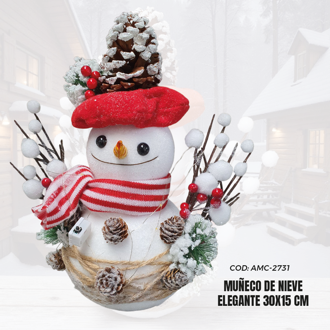 Muñeco de nieve elegante 30x15 cm ⛄❄️✨